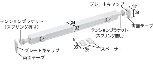 - 「突っ張り棒」(テンションバー)でネジ止めせずに設置可能